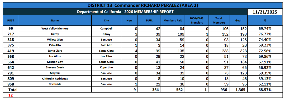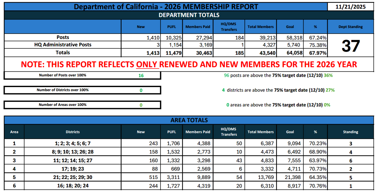 2026 Membership Goal: 65 Total Members: 38/58.46%