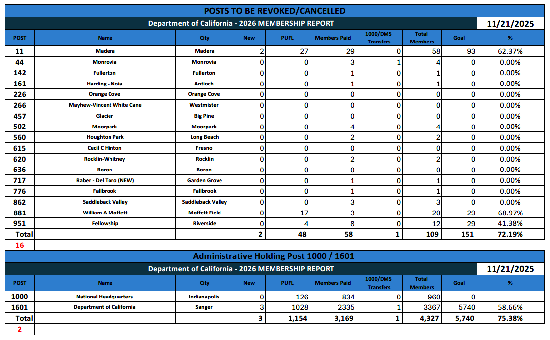 CA DEPARTMENT POST PROBATION & SUSPENSION REPORT November 21, 2025